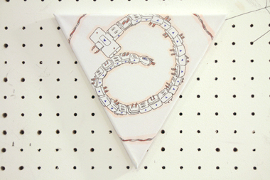 (電球、鏡、プロジェクター、ノートPCによるCG再生プログラム、ジェッソ、色鉛筆、アクリル絵の具)