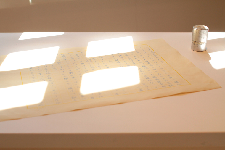 本作品は、1年前に画家、久野志乃と共催した「FABRICATION」展がきっかけとなり展開した。10年以上前、ロンドンのマーケットで匿名のネガフィルムを買ったエピソードを元に、絵画や写真といった、視覚的メディアではなく、言葉で表現したいと考えた。
