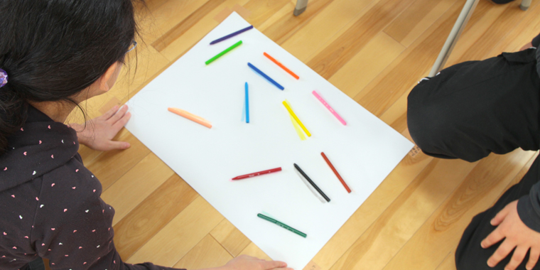 導入としてアニメーションの仕組みを学び、映像の知識を高めると同時に興味を喚起する。ストップモーションやタイムラプスなどの技術を用い、身体を使ってアニメーション制作の簡単なトライアルを行います。後半は、手法やテーマの興味に基づいて1クラスを6チームに分け、チームごとのテーマ設定から、ストーリー制作、役割分担など子どもたちが自主的に組み立て実際にアニメーションを制作する。振り返りの時間などの適度な負荷をかけ、授業ごとに段階的なレベルアップを促す。また、プロセスに重点を置き、話し合いの時間を十分に設けることで、協働制作におけるコミュニケーションの大切さを実践的に学んでいきます。